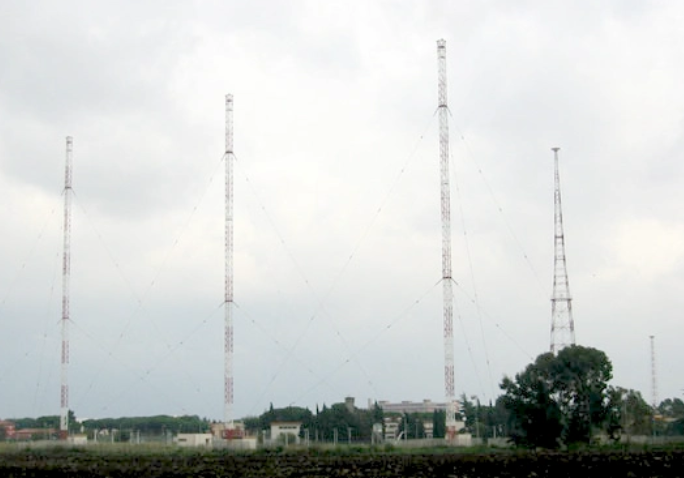 116-Meter-Masten: Ein System aus drei Masten wurde für die Frequenz 1.332 kHz (Rai Radio 1) mit einer Leistung von 600 kW genutzt.